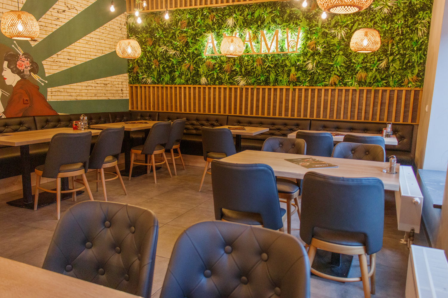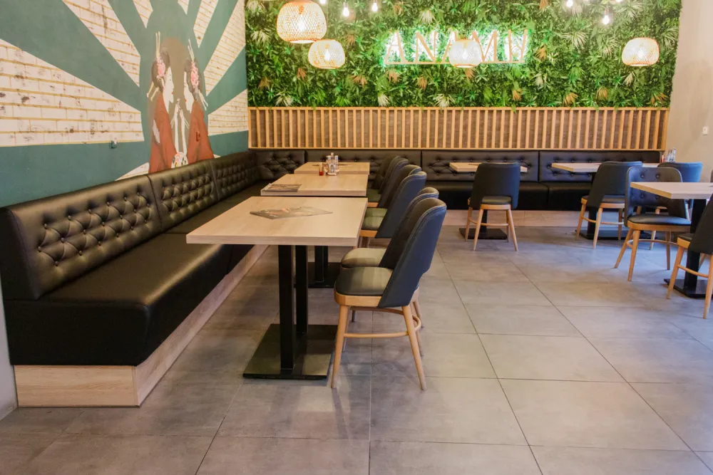 Asijská kuchyně, to je naše! Proto nám dělalo radost, když se nám ozvali z blízkých Pardubic majitelé asijské restaurace Anamii s prosbou, že by chtěli pomoct s vybavením jejich nově otevřené restaurace. Cílem bylo harmonicky sjednotit sedací nábytek s atmosférou a stylizací restaurace. To není překážkou při široké škále čalounění i odstínu dřeva. Židle jsou navrženy tak, aby nabízeli optimální pohodlí pro hosty. Lavice pak jsou na míru přizpůsobeny interiéru a především potřebám zákazníků, kteří preferují klidnou večeři na delší posezení.