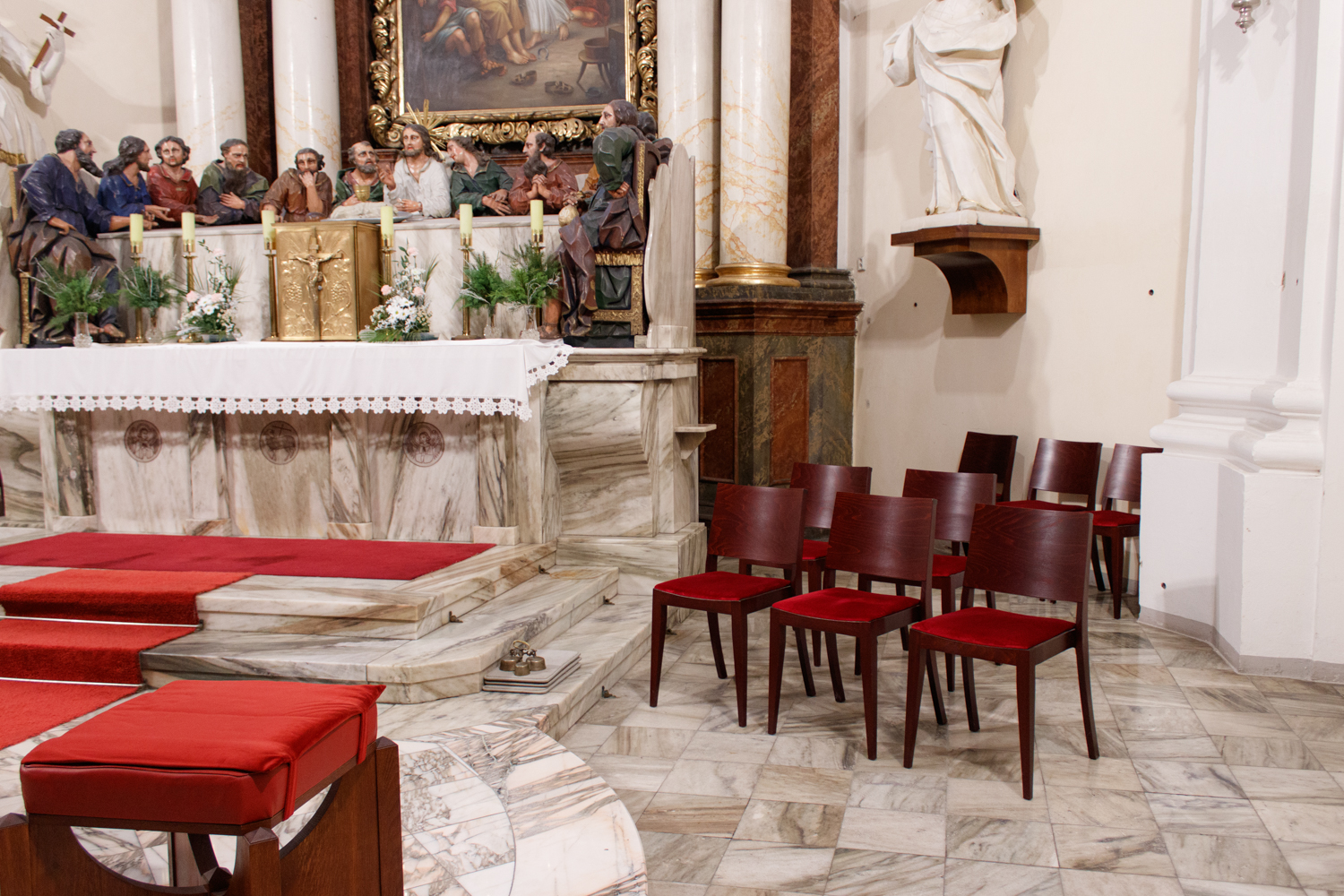 Do našeho památkově chráněného kostela jsme sháněli židle, které by vzhledem zapadly do našich prostorů. Od židlí jsme žádali kvalitní zpracování, kvůli prostorům, které jsou náročné na podmínky skrz teplo a vlhkost. Zaujaly nás masivní bukové židle od společnosti RESSED. Nakonec jsme vybrali židle Z-1026, které mají plnou opěrku pro příjemné sezení a vysokou nosnost.