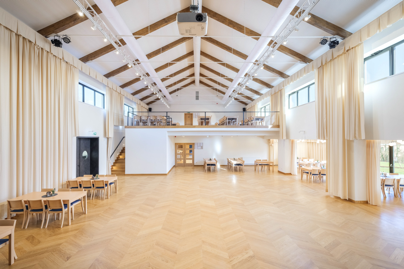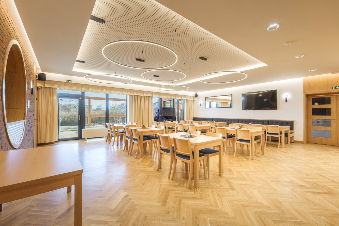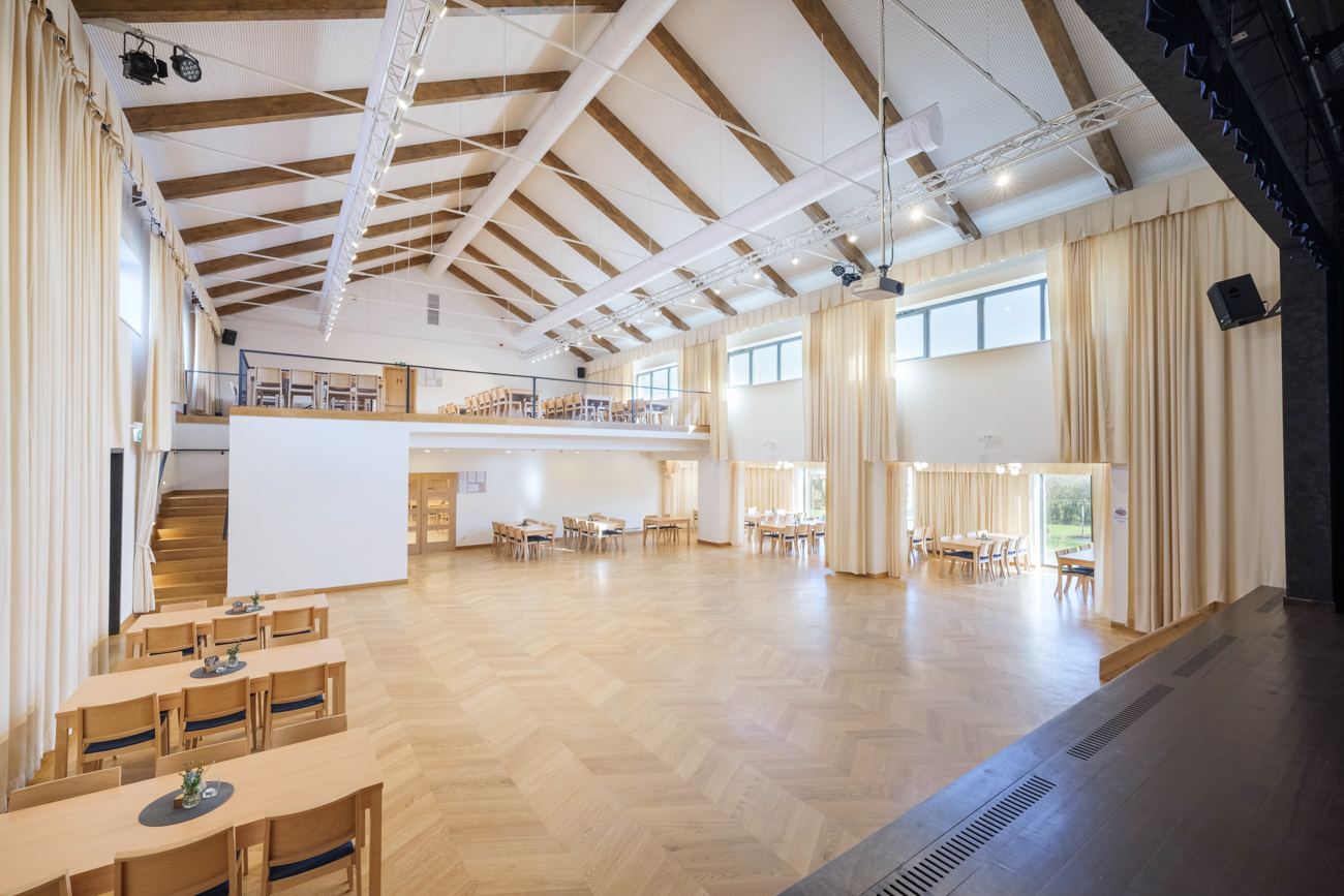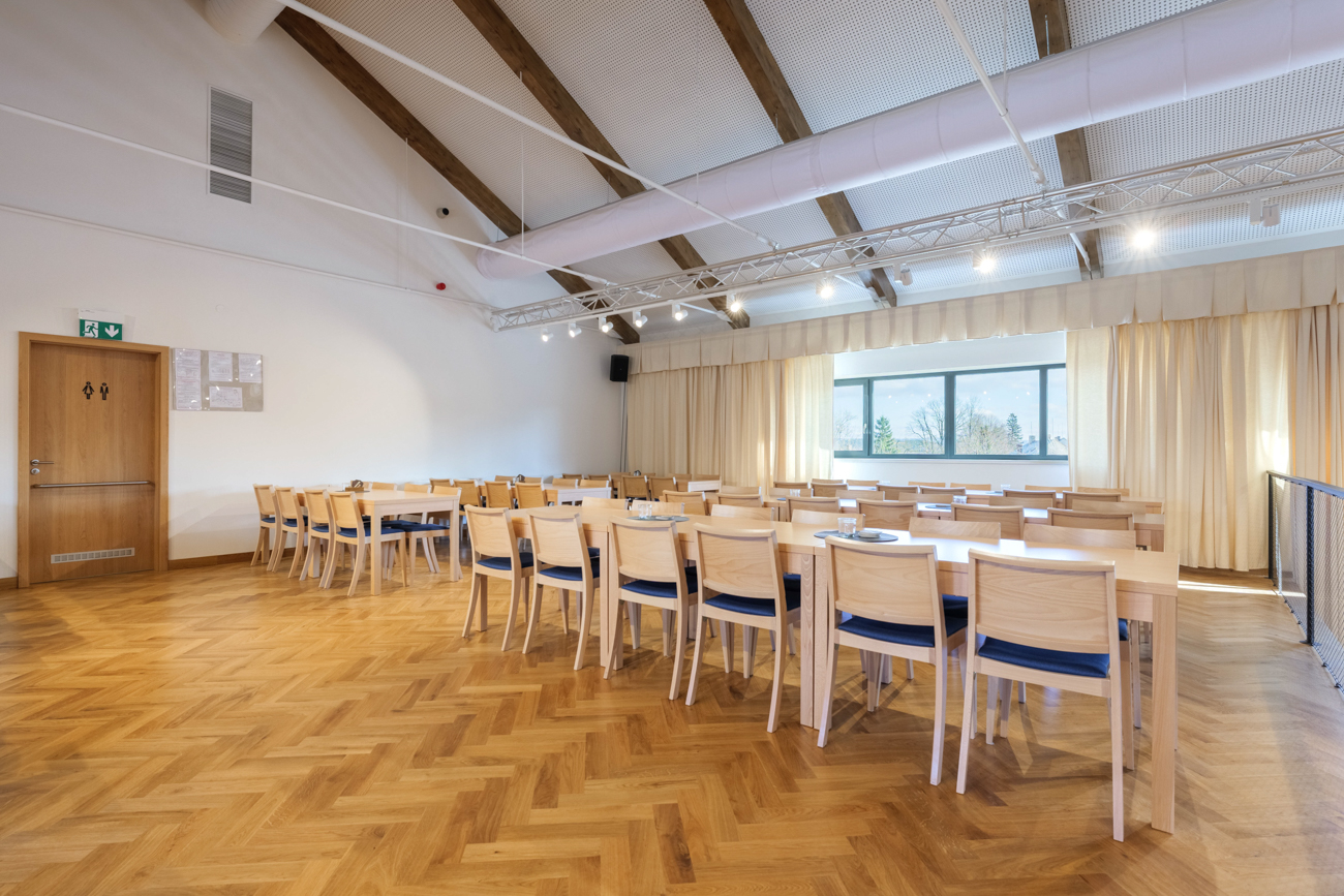 Na sál jsme zvolili modernější styl - židle Z-1026LB. Ke všem židlím jsme objednali také adekvátní počet stolů v ST-106 v prémiové verzi.
