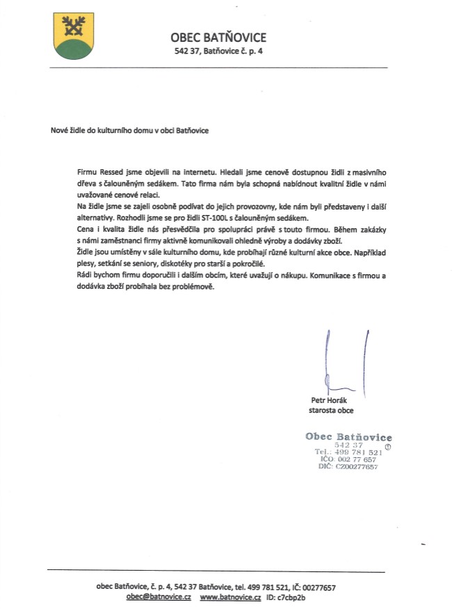 Rádi bychom firmu doporučili i dalším obcím, které uvažují o nákupu. Komunikace s firmou a dodávka zboží probíhala bezproblémově.