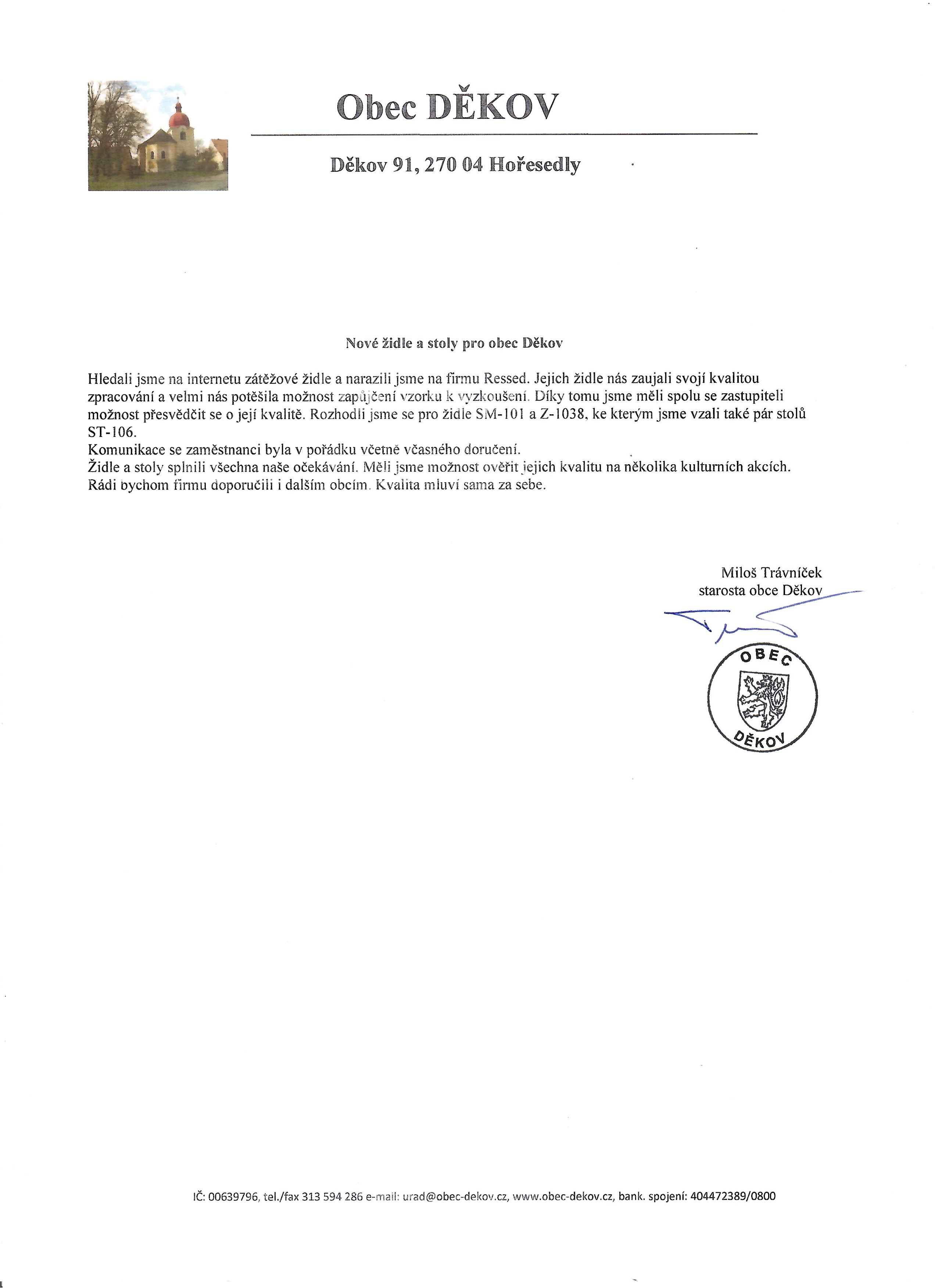 Obec DěkovVyjádření od starosty