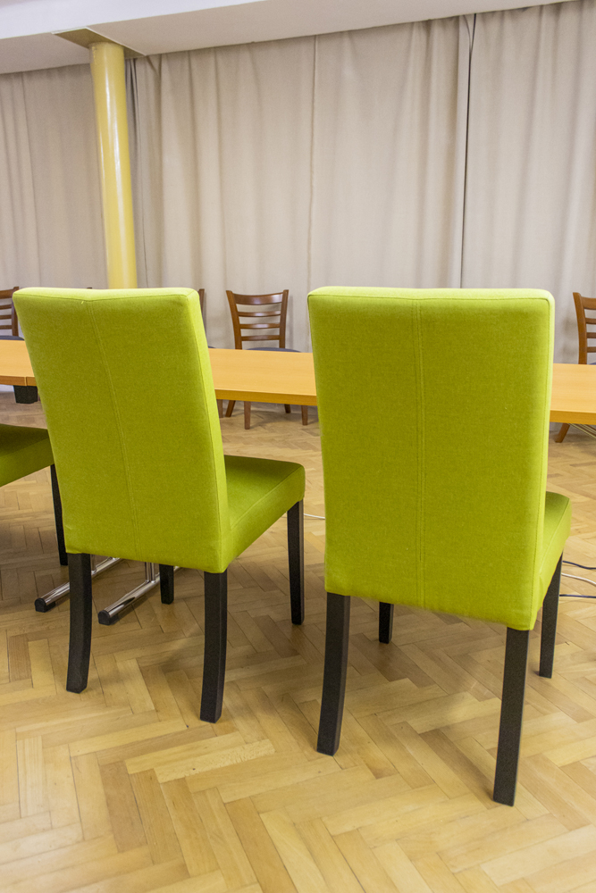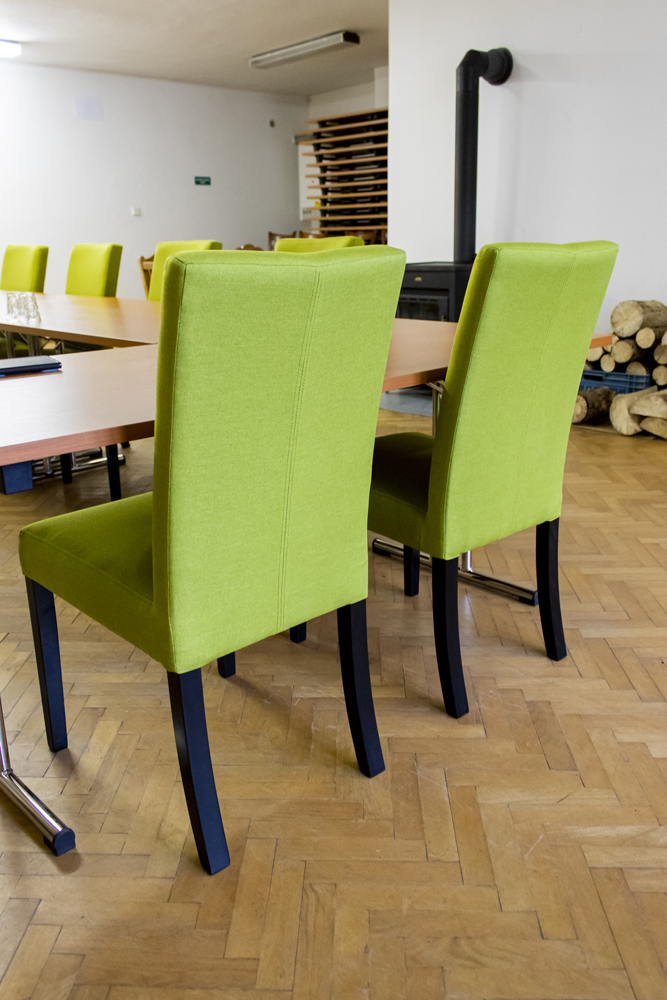 S dodanými židlemi jsme velice spokojeni. Především díky jejich kvalitnímu zpracování. Vybraná látka čalouněné židle Comforta oživila naše interiéry. Na sál jsme vybrali židli SM-101, která nás oslovila svým masivním zpracováním. Další výhodou byla také možnost stohování, kterou často využíváme vzhledem k omezeným prostorům sálu.