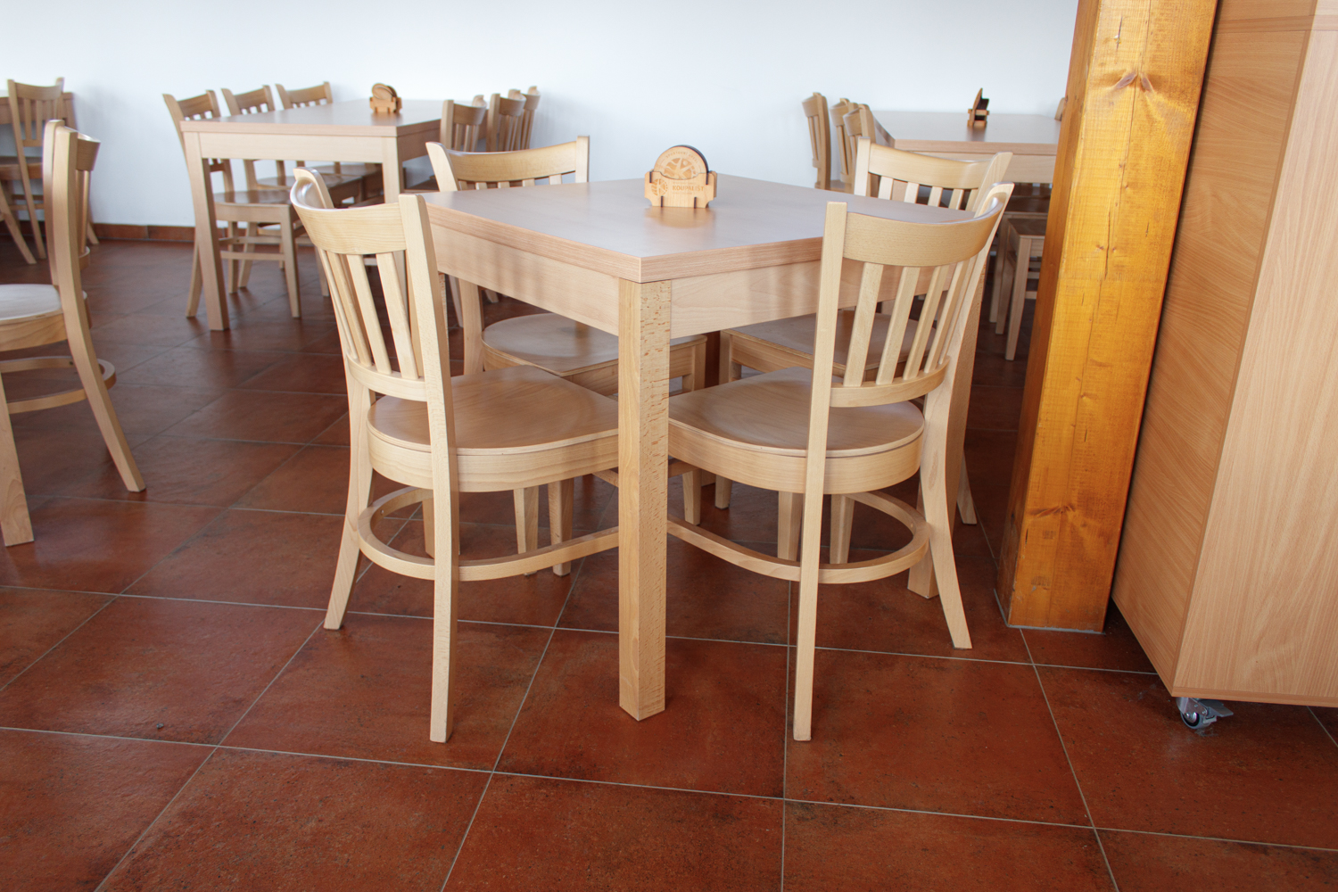 Nakonec jsme zvolili typ židle Z-1038 a k tomu stoly ST-106 vše jsme volili v odstínu buk přírodní. Hned na začátku jsme se domluvili na přibližných termínech dodání, které byly splněny.