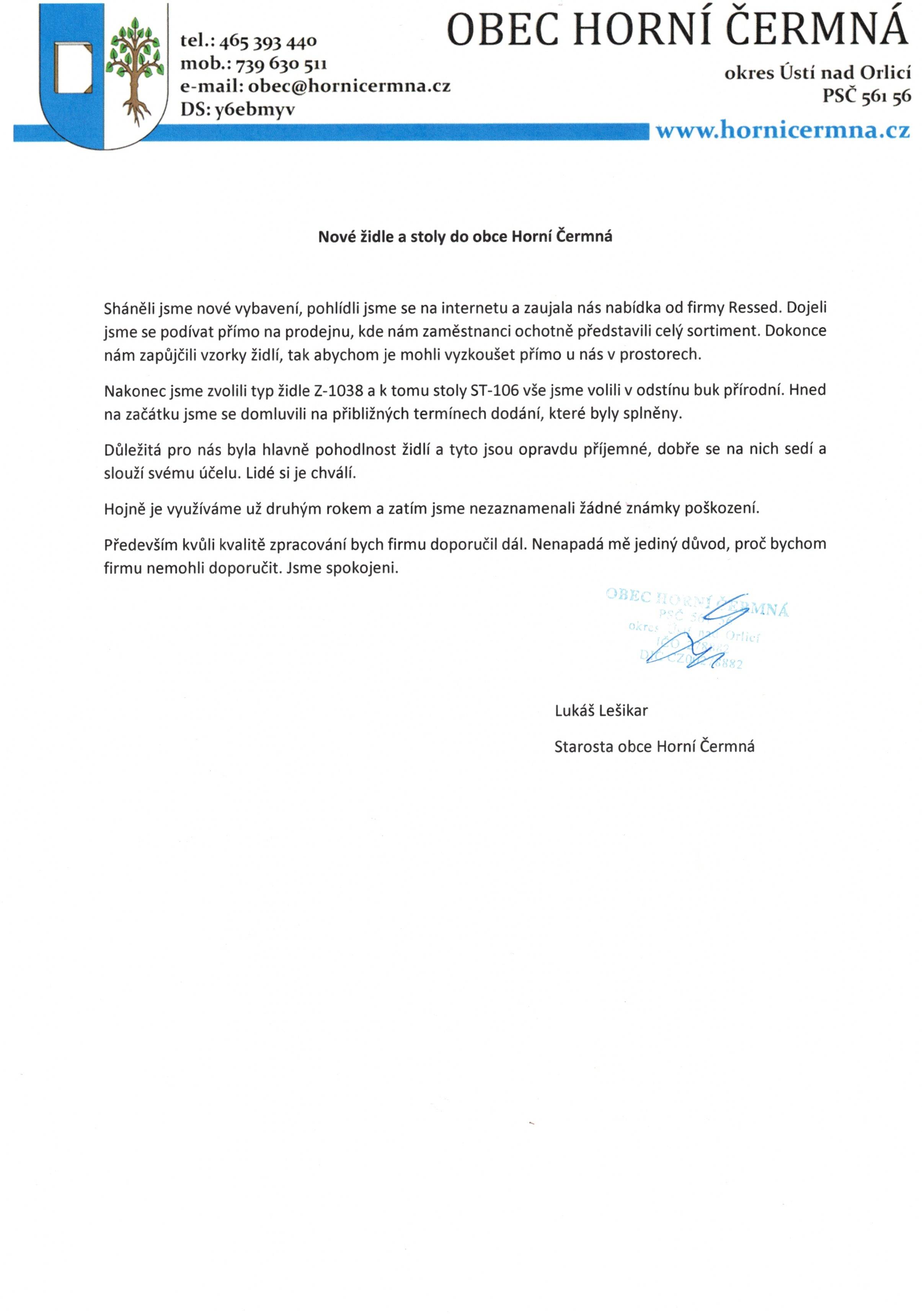 Obec Horní ČermnáVyjádření od starosty