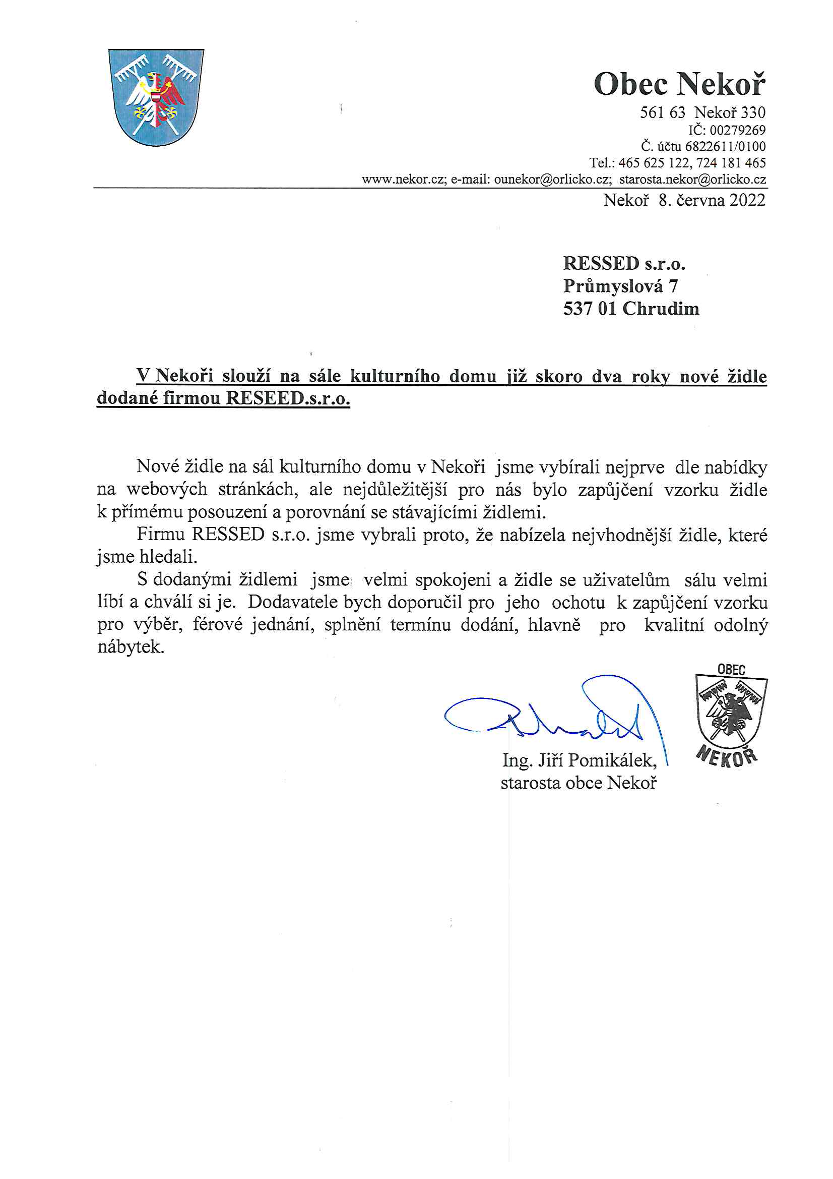 Obec NekořVyjádření od starosty