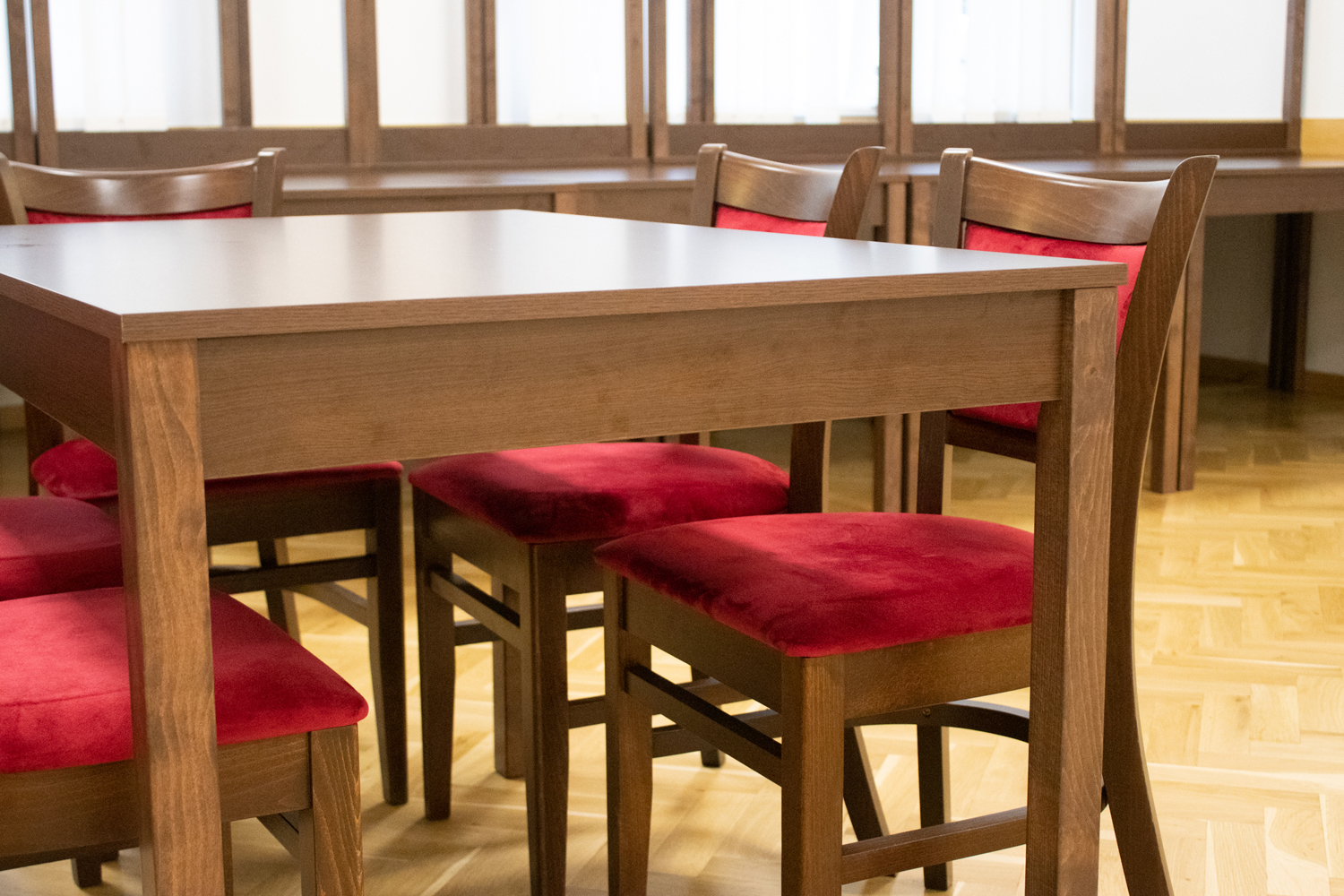 Zaujal nás tištěný ceník společnosti RESSED s.r.o., která nabízela židle a stoly vhodné pro kulturní domy. Oslovili jsme je pro podání cenové nabídky. Naše požadavky byly čalouněné pohodlné židle, které vydrží v provozu, a odolné stoly sladěné do stejného odstínu. Zaujala nás také možnost hydrofobních látek, které jsou pro naše účely velmi vhodné.