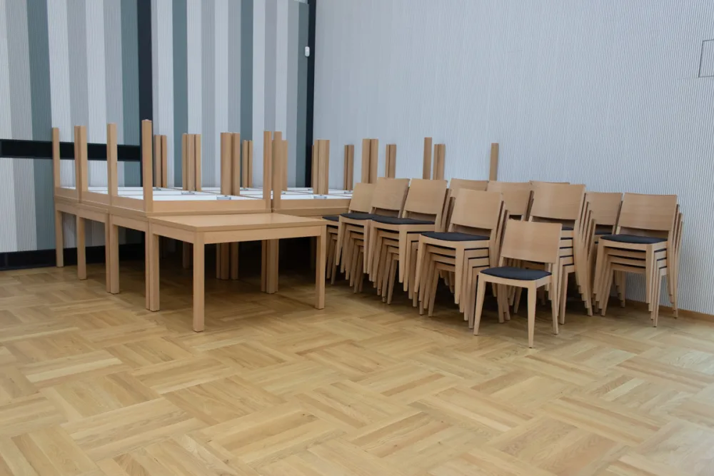 Vážení zastupitelé, často si lámete hlavu, jak využít prostor obecních sálů, proto jsme s našim zpravodajem vyrazili do Troubelic, abychom pro Vás nafotili inspirační fotografie, jakým způsobem využili pro jejich sál židle a stoly z firmy RESSED. V Troubelicích nad řešením přemýšleli chytře a zvolili produkty, které je možné po skončení akce složit po obvodu sálu. Ať už potřebují více prostoru na tancování nebo chtějí do prostoru rozmístit co nejvíce stolů, možností jak uzpůsobit prostor mají hned několik.