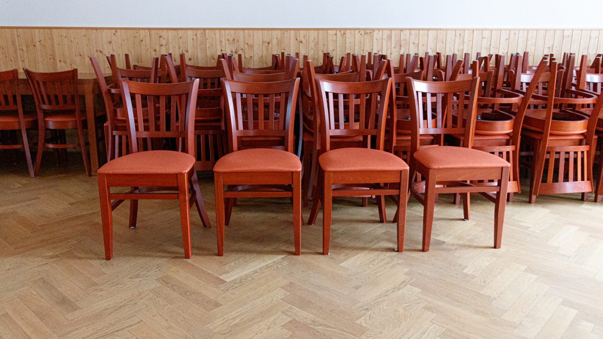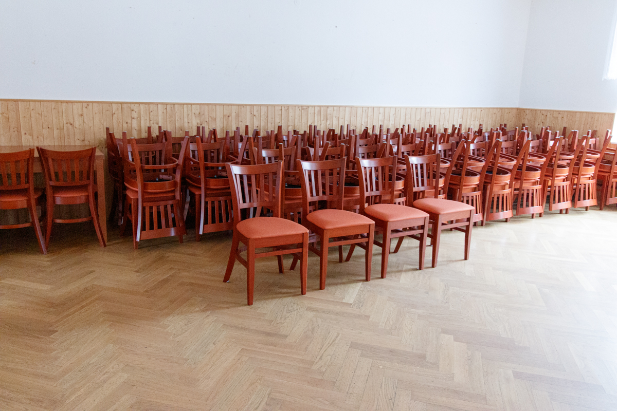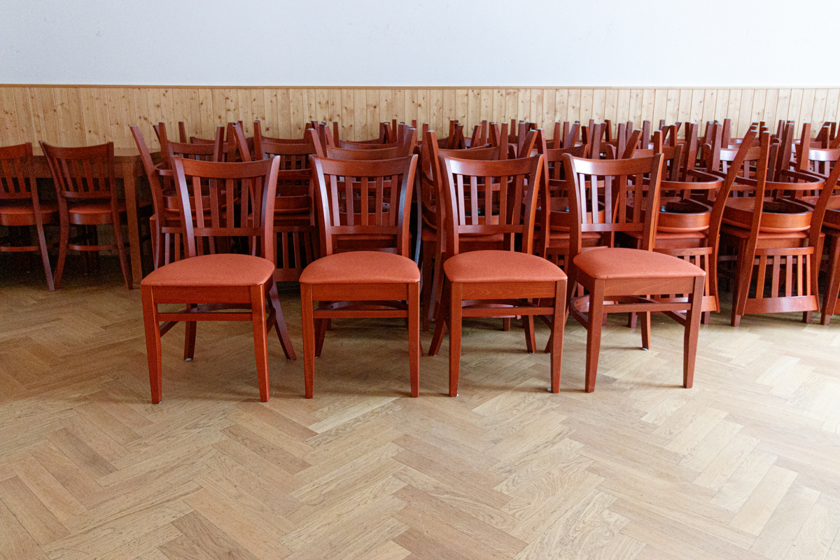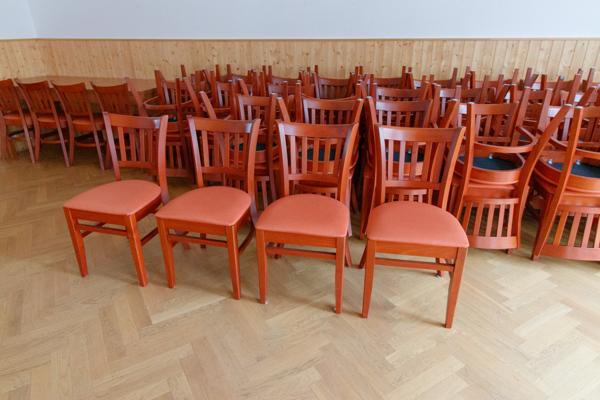 V sálu jsme měli zastaralé vybavení, které bylo na čase vyměnit. Hledali jsme kvalitní židle a stoly, které vydrží vysokou zátěž, budou pohodlné i pro dlouhá divadelní představení a zároveň budou dobře vypadat. Sál je využíván pro více účelů například k cvičení jógy, ping pongu apod. Z tohoto důvodu jsme měli zájem vybrat stohovatelné židle, které by bylo snadné uskladnit.